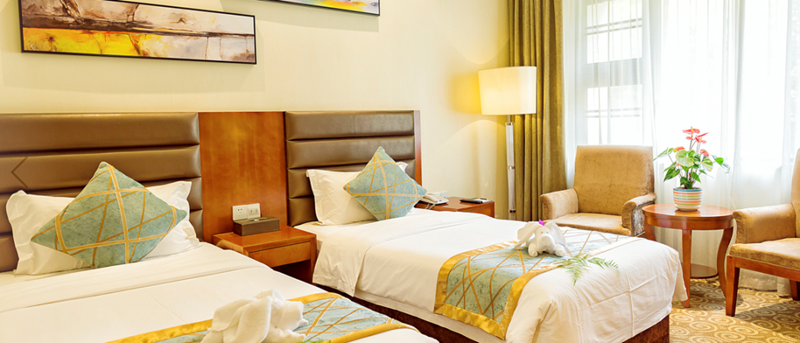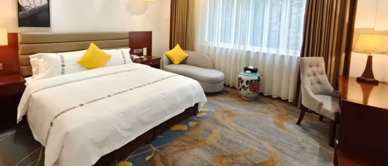 拥有55间客房,三星级服务标准,房型分为商务房、园景房、棋牌房、亲子房。